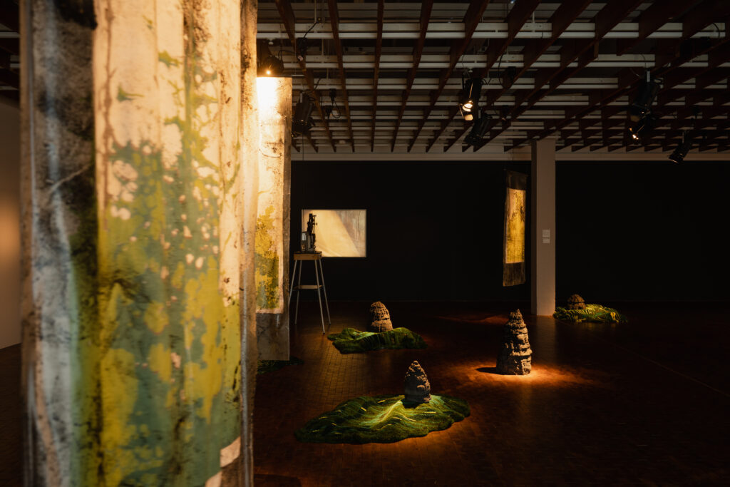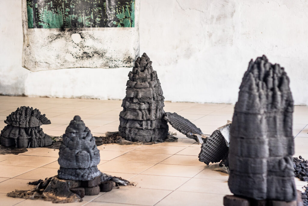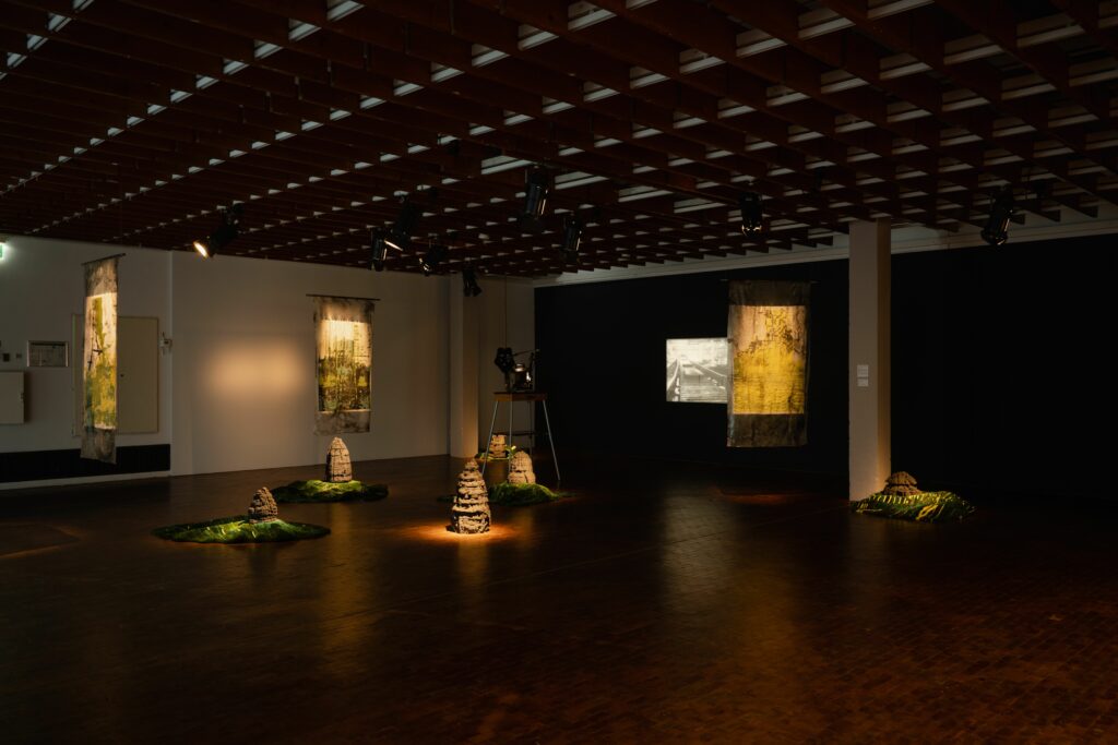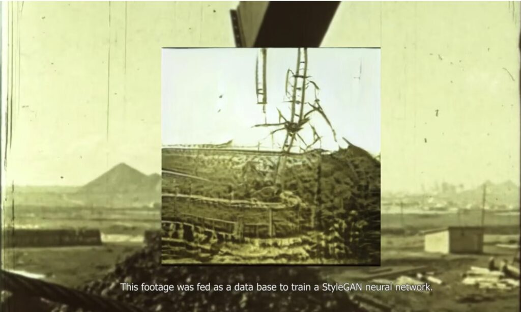 deals with uncanny crossovers between earthly materials and modern infrastructure. The artists worked with a 16mm film archive from the Cold War era and the notion of progress through industrialization, mining, and automation that emerge from the moving images. They work with artificial neural networks (AI) to transform the collective imaginary from the cold war era into materials that refer to a future as distant as the past is to the minerals from which they were constructed. The creation of fictional narratives about futures of coexistence shift the digital imaginary to the rematerialisation of a new possible space-time from the ruins of the Anthropocene age.